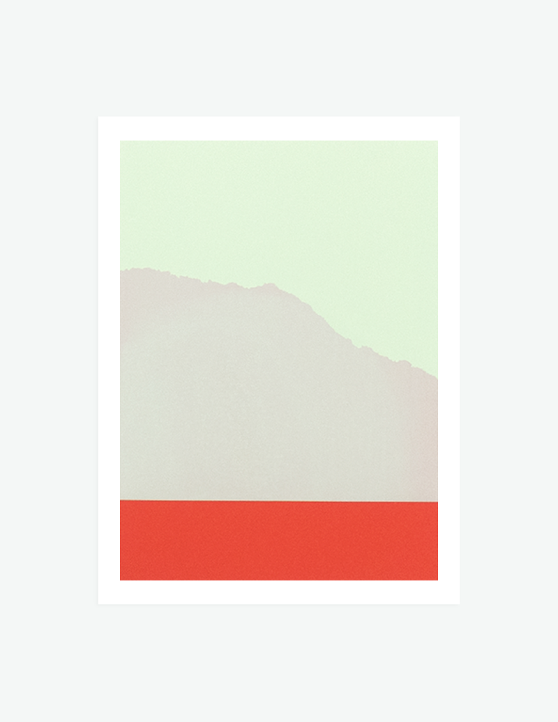 The series takes its inspiration from the shifting appearances of a mountain range and lomography (analogue photography). It is made using a technique called monoprinting, where paper cut-outs are printed onto solid and transparent colours.