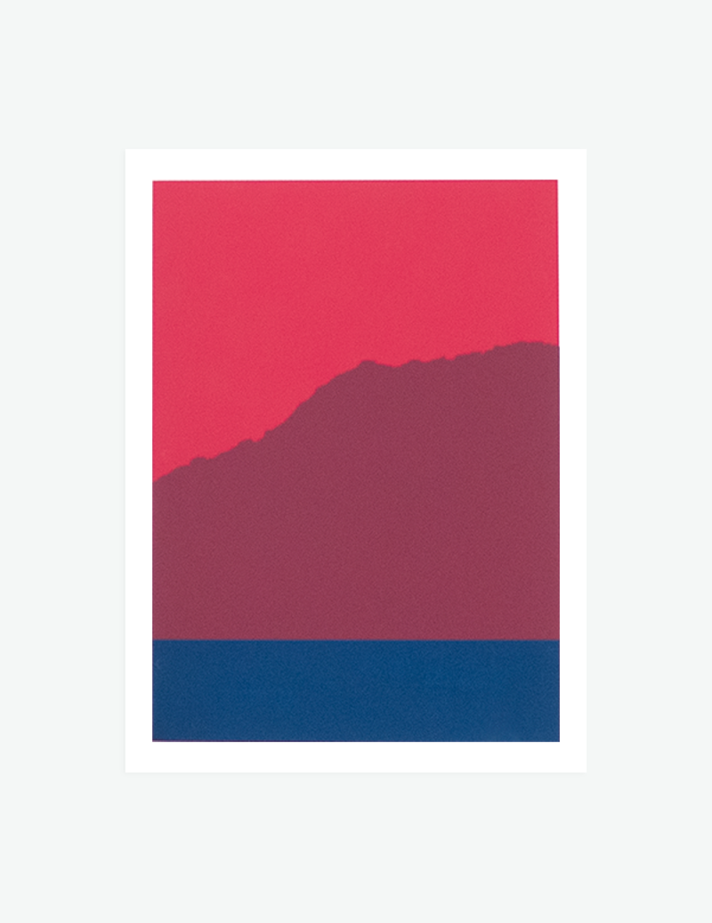 The series takes its inspiration from the shifting appearances of a mountain range and lomography (analogue photography). It is made using a technique called monoprinting, where paper cut-outs are printed onto solid and transparent colours.